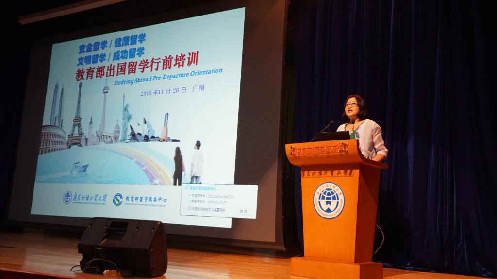 本网讯 11月26日,由教育部主办,教育部留学服务中心承办、广外语外贸大学教育部出国留学培训与研究中心协办的“2015年国家公派、自费留学人员出国行前培训会”在我校六教报告厅召开。该培训会旨在不断完善和提高对出国留学人员的管理和服务工作水平,切实维护我国留学人员在外合法权益。